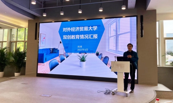 周博副处长介绍了学校创新创业人才培养支持政策。他提到学校双创教育体系的三大特点:一是“国际化”,暑期国际学校每年会邀请国际一流大学教授来校开设全英文课程,确保最前沿的创新创业教育内容能够进校。二是“矩阵式”,从“全体”到“个别”,创新创业教育全覆盖同时全力助推特色项目实践落地。三是“一二三课堂联动”,塑造基本专业技能、综合实践能力、创新创业精神三位一体的“全能型”人才。