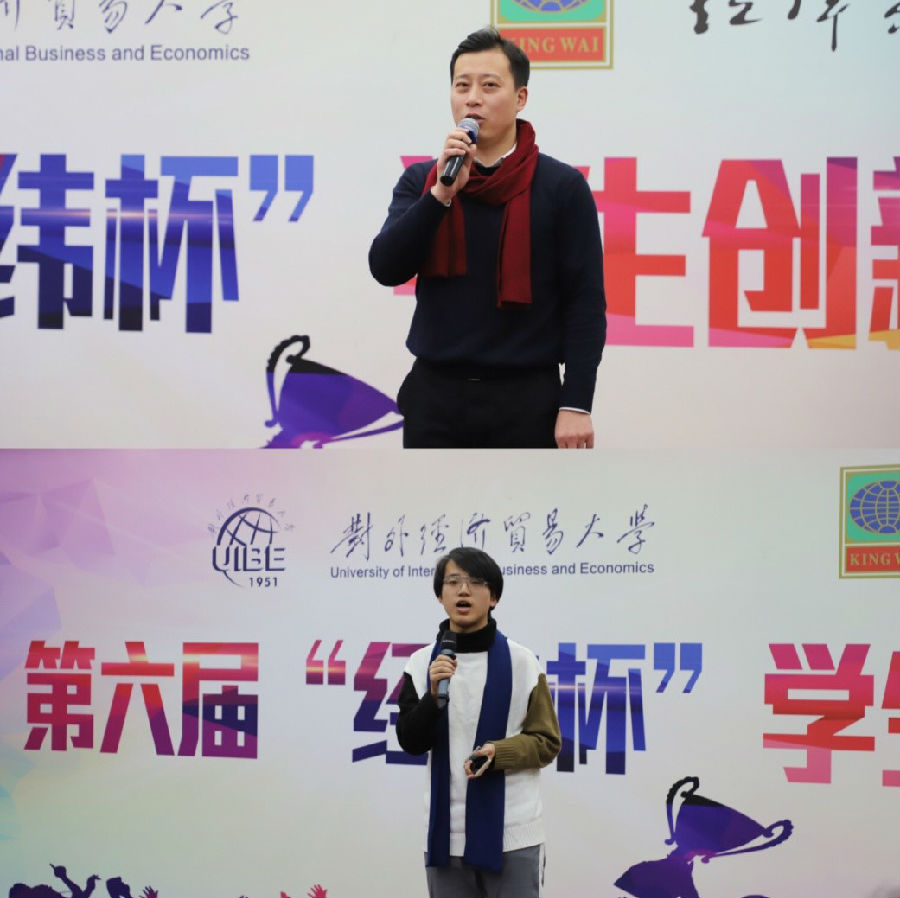 徐松处长在讲话中说到,十年树木、百年树人,感谢经纬集团“投资”人才培养工作。他对参赛同学们给予肯定和鼓励,评价同学们是“富有创意、具有闯劲的热血青年”。他还勉励同学们要常怀感恩之心,牢记经纬集团为他们的创业之路提供的第一笔宝贵资金。借此机会,他还介绍了学校创新创业的特色工作情况。近年来,在学校领导的高度重视和大力支持下,招生就业处与教务处、学工部、研工部、校团委、商学院等单位密切合作,在创新创业大赛、创新创业课程、创新创业国际联盟、创业园建设等方面取得了新的突破和进展,得到北京市、教育部的认可和奖励。今后,学校将继续加强与周边企业、学校的合作,发挥学科优势、互补有无,力争打造以对外经贸大学为中心的“惠园一带一路经济带”。新创业,创新业,校企合作,共赢未来!