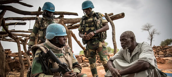 联合国图片 | 联合国马里稳定团来自塞内加尔的维和人员正在该国中部深受暴力影响的莫普提地区执行巡逻任务,并与当地百姓交谈