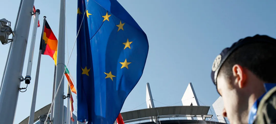 欧盟图片 | 法国斯特拉斯堡欧洲议会大楼前飘扬的欧盟和成员国旗帜