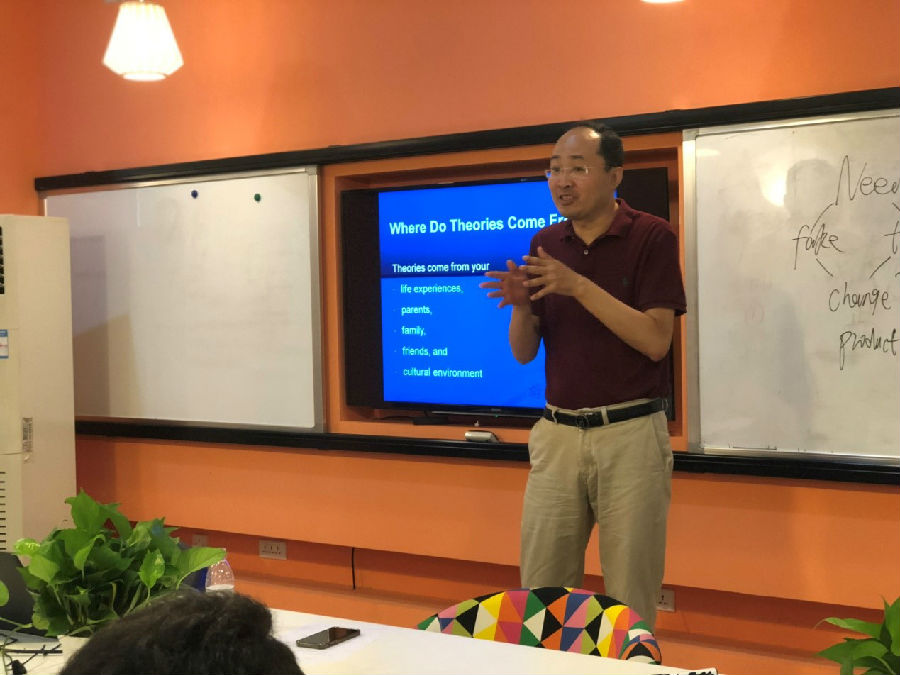 2018年7月10日,第三届创新创业暑期夏令营第二天的精彩课程即将开启。上午9点,王铁栋教授为同学们讲授了“精益创业与硅谷创业新动态”,王铁栋教授从“个人理论”的角度为同学们讲授了有关创新创业的理论与认识,还以小组讨论的形式让同学们更深刻理解“个人理论”的意义,同学们分组讨论热烈并对小组结果进行了陈述,同学们收获很多。