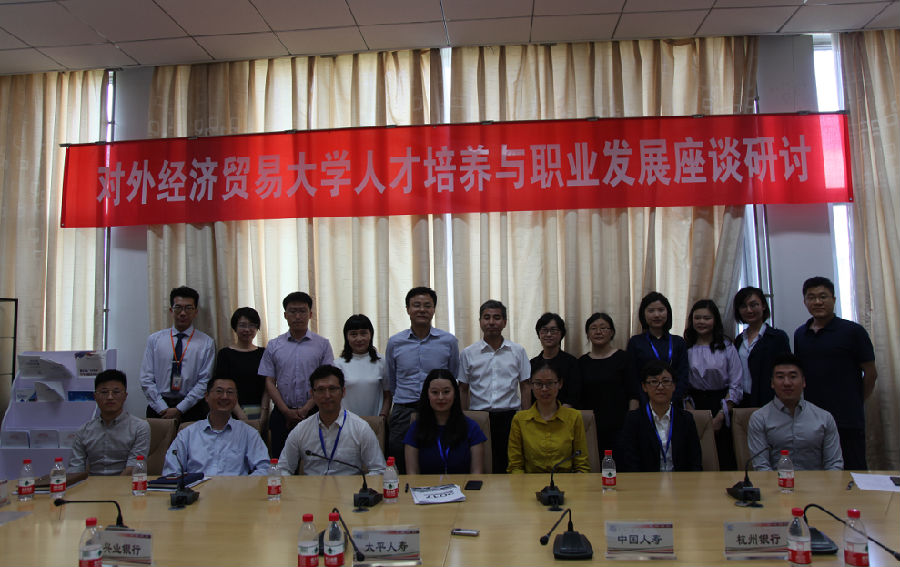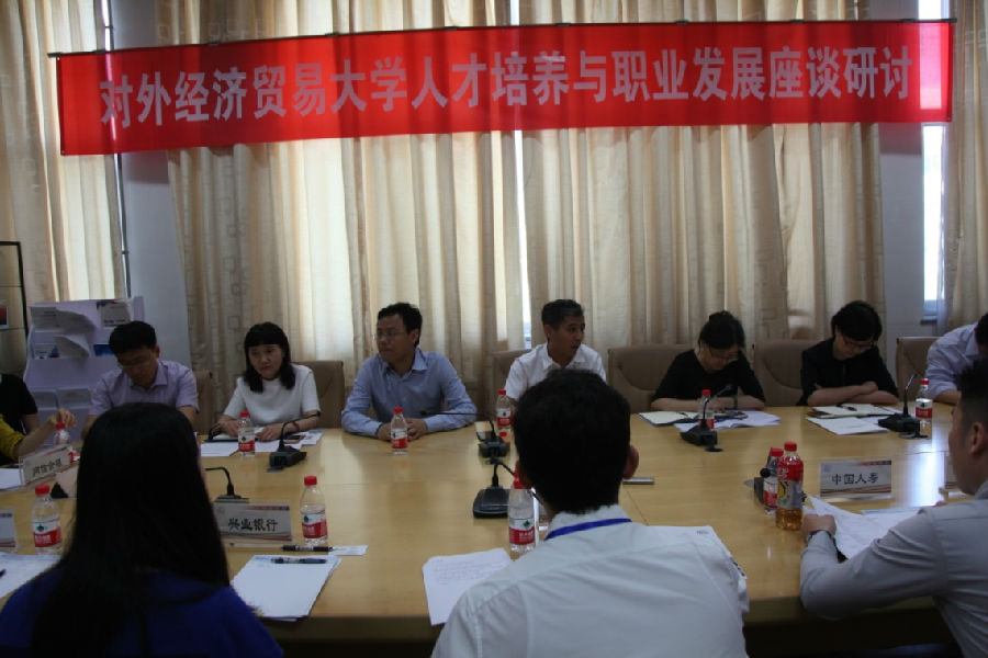 讨论交流环节,用人单位代表分别发表了各自的观点和感受。兴业银行北京分行孔茜经理介绍了他们目前正在建设和推广的“智慧银行”,并表示目前他们急需“金融+信息”的复合型人才。宁波银行人力资源部陈经理表示,宁波银行正在快速发展中,非常欢迎具有活跃思维和工作热情的贸大学子;之前进入宁波银行工作的贸大学生基本上都在管理培训生岗位,经过2-3年的培养成为产品经理和客户经理,希望学校能够在宁波银行建立实习基地,加强双方的了解和互信。杭州银行迟艳娜经理提出了对毕业生求职期望进行引导的建议,她认为部分学生更多关注投行、资管等方向,希望学生的职业发展定位能够更加宽广。中国人寿、江西铜业、FESCO的人力资源经理均表示,贸大毕业生能力素质较强,定位清晰,很符合企业需求,希望能与学校相关专业建立更紧密的联系合作,很愿意参与学生在校期间的成长和培养过程。与会单位纷纷表示,经贸大学作为全国一流的财经外语外贸院校,在始终向社会输送优秀人才的同时,仍然能够倾听用人单位的声音、紧跟时代的步伐,着实令人敬佩。