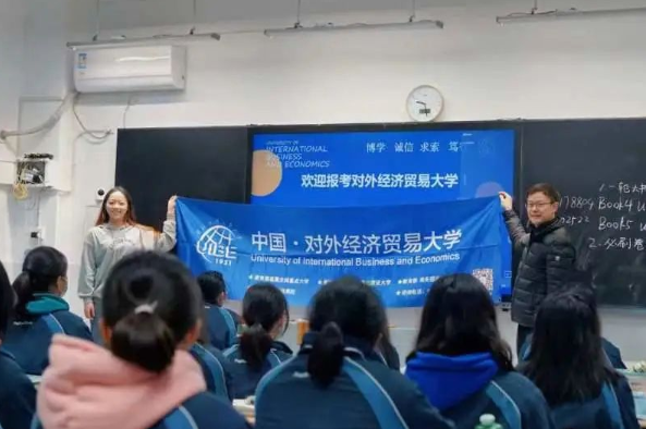 2023年1月13日,我校在恩施州来凤高级中学组织宣讲会,该校老师高度重视,联系两个尖子班学生参与宣讲会,重庆招生组组长邱昌情老师主讲,国际商学院宁玉洁同学(来凤高级中学毕业生)共同参加,宣讲会持续3个多小时。